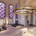 Neben einem komplett neu gestalteten Altarbereich, wurden sämtliche Oberflächen aufgefrischt und neue Licht- und Tontechnik installiert.